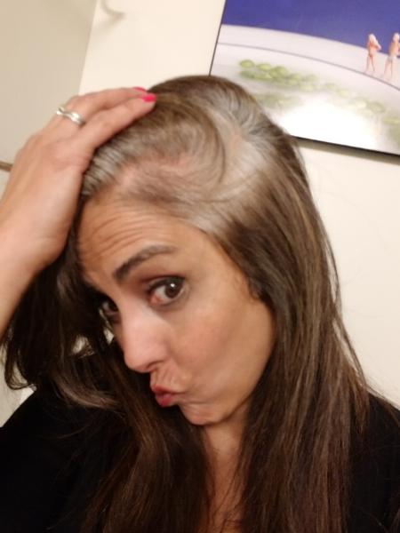 It's been a few weeks and the white hair is just starting to frame my entire hairline and paving a nice snowy road down my part. It's shocking to see when I look in the mirror in the morning but I am slowly programming myself to see beyond my CURRENT color chaos.